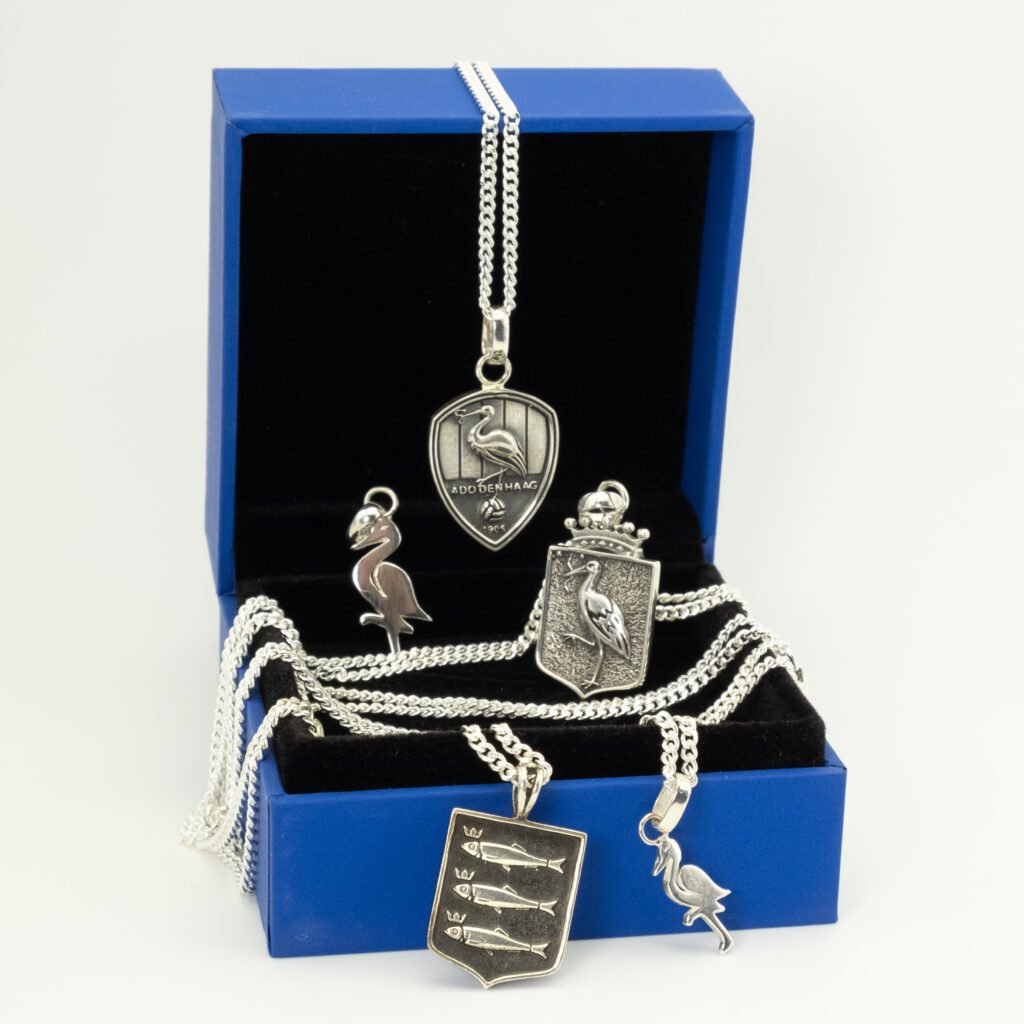 Zilveren hanger wapen van Den Haag ooievaar met kroon