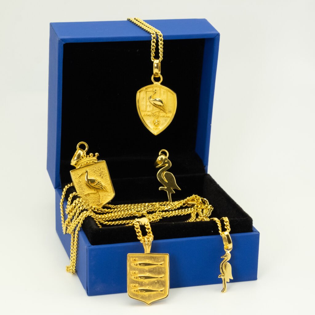 Gouden hanger wapen van Den Haag ooievaar met kroon