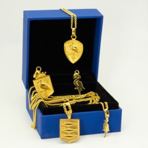 Gouden hanger met ketting wapen van Den Haag ooievaar met kroon